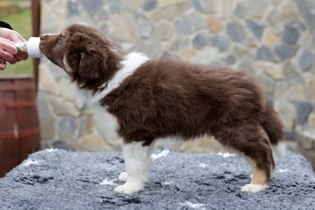 je ve zbarvení hnědobílá s pálením. Rodiče sportují, mají výborné povahy a jsou nadstandardně zdravotně testováni.
