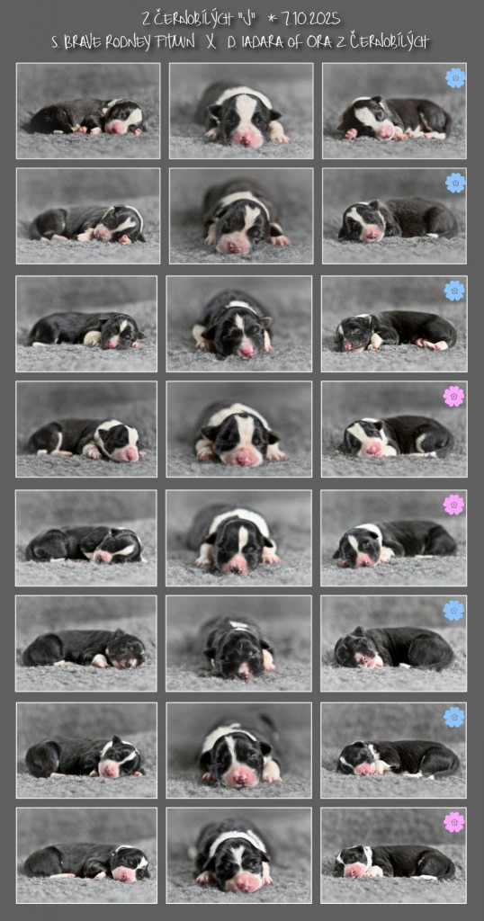 Fotogalerie vrhu "O" ZDE (Ch. Flower of Old hill Grog x Ch. Etual Enigma z Černobílých)